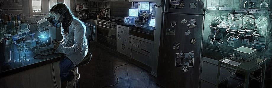 "CORDYCEPS MILITARIS: An endoparisitic fungi known to infect and modify the behavior of Tibetan rainforest ants, replacing the hosts' tissue with its own fruiting body to generate the biomass needed to reproduce and sprout a mushroom — mother nature's version of an Alien chest-burster. When the Cordyceps' mycelia colonizes an insect it mummifies the living tissue, keeping it alive long enough to rupture the chitinous exoskeleton and sprout a reproductive mycelium branch, which acts as a "spore factory" that spreads the infection to those around it. Normally this effect takes place over a few hours and only affects the smallest members of the insect kingdom, but when you run the spores through a mass amplifyer — instantaneous mycotic implosion, with an infectious blast radius that is equally magnified." "And you've tested this out on live specimen?" "Yes, with some notable failings, my aim isn't what it used to be." "My business partner Ben and I, perhaps you've heard of him?" "The rock man?" "Yes the rock man. We exterminated aliens for a living, now if we could combine our findings into a single weapon..." He picks up the gun and aims it around... "Have you tried retrofitting this—" It breaks apart into smaller components that clank onto the floor, "I see you've already taken it apart a couple times." Sue and Reed bend down to pick up the pieces, they look at an ammo cartridge, "How much can this can store?" "Oh I don't know, quadrillions. Spores are a virtually unlimited resource." "So it seems... we may be able to broker a deal. How would you like to be given unlimited resources, and restore your good standing with the scientific community?" "The community? Absolutely not. The community and I have a longstanding mutual contempt." Reed takes that for an answer, nods and turns around to leave but Sue asks him, "How would you like to join our team, and hunt monsters... underground?" He considers that for a minute. "Fine. I'll accompany you on your hunt, but on one condition, show me the monsters they made out of you." Sue conjures a mezmerizing series of light displays and torroidal force bubbles, "Hunting monsters... with monsters, my only question is how am I expected to discern one from the other." "We'll be wearing matching suits."