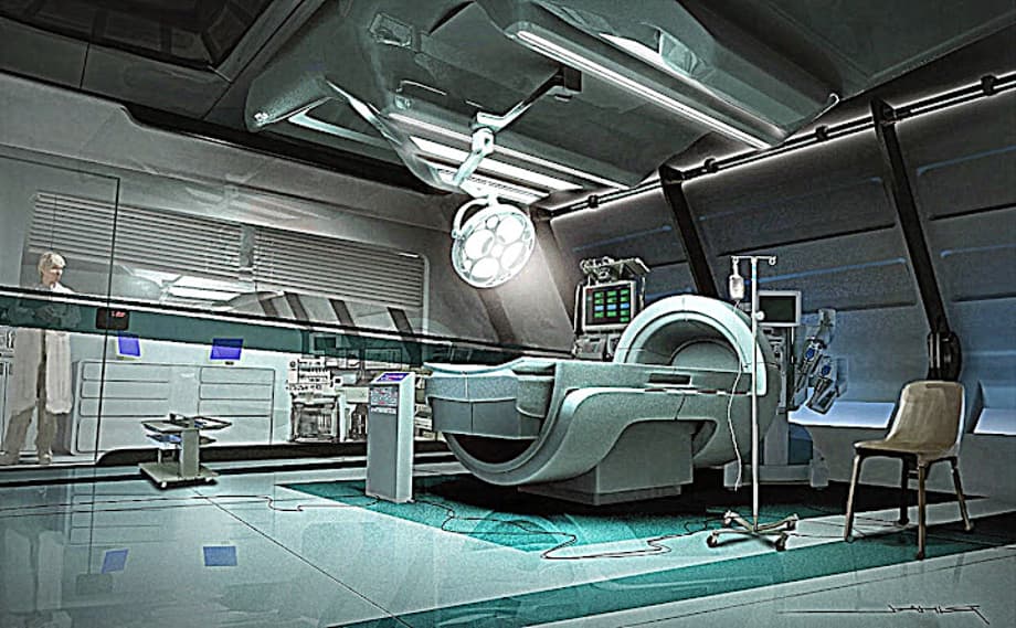 CHAPTER 9 - Detention Quarantino: Doctor Storm steps out onto The Baxter Building's helipad in an extreme wide shot of the Manhattan skyline and heads down to the 35th floor. The media circus erupting down at the building's ground floor entrance isn't any of his business, and whether or not his tenants feel safe living beneath his family was the least of his concerns to begin with. Down on the emporium's 3rd level, DR. ALYSSA MOY has been tirelessly running diagnostics on the team's conditions; the 33rd story houses the building's medical center, chemistry and pathology labs, she would live on this floor if she could. Dr. Storm enters, "Prognosis, Alyssa." "For... all four of them? Still inconclusive." "How so?" "Four individual, unexampled syndromes of a freak accident? They'll each take months to prognosticate." "But is it safe to enter, in your medical opinion?" "No these phenotypes aren't some kind of contagious disease." "Unlock cell 1." He enters, and pulls up a chair next to an MRI machine where his daughter is resting, his hand covers his mouth seven different ways, "I thought I had lost you, but you held in there. You stayed strong." But it's the sound of his chair scraping the floor that wakes her, she immediately tries to get up but Frank quiets her, "Shhhh stay calm, stay calm, there was an accident, remember? You're home now, how are you feeling?" "I feel... alive, please tell me I'm not the only one." He forces a smile, "You're not. Everyone survived." She painlessly removes her IV with medical precision and heads for the door, "I need to see them right now." Frank grabs her arm but has to let go when a TRANSLUCENT BARRIER knocks him back, along with the IV stand, the chair and an operatorial lighting fixture. She flattens her palm on the biometric security pad beside the door, it blinks red and registers a negative sound, so she tries it again. "IDENTITY: UNDETERMINED," and realizes that the door won't open because the Building no longer recognizes her DNA. "Run it by me again, exactly what happened to us last night."