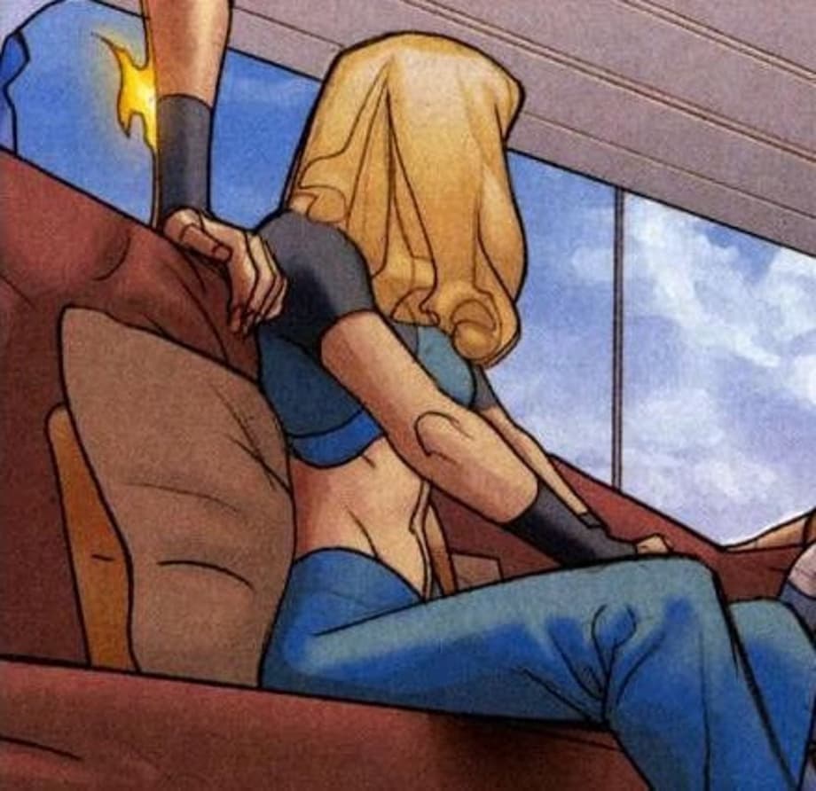 "And they said if I do this one last thing for 'em I can relocate to the place of my choosing, we just gotta secure some military contracts with the brass on the West Coast and I'm moving all my shit back to Cali' I swear, no more alien business from here on out, 'Licia, I promise." Reed and Alyssa eavesdrop on Ben's phonecall, but since his booming voice permeates through every corridor it's not like they have any choice in the matter. He hasn't seen his fiancée in well over a month now, Reed is asked if he thinks those two will last, he says Alicia Masters isn't the superficial type, she won't care what he looks like. So have you told him yet? Told him what. About his condition, that it's irreversible. No, not yet. Hopefully not ever, the idea of finding a cure might not even cross his mind if they move forward with the engagement. You think? Yeah, I'm thinking she'll be his rock, and vice versa. Alyssa shifts the topic over to Reed and his romantic future, and this exchange goes on for a while because she's under the impression that Reed is playing coy and referring to her in the 3rd person, but Reed thinks they're talking about Sue so there's a bit of a misunderstanding going on. She closes the gap between them and yanks up the zipper on his blue jumpsuit without warning, then zips it down an inch for comfort and wishes him luck.
