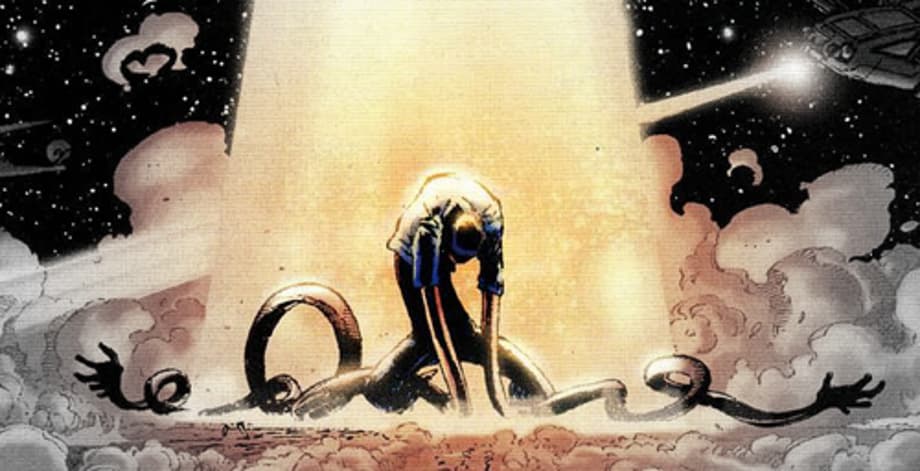 CHAPTER 12 - The Buried Alcove: Somewhere in a dark, non-descript alien throneroom, the King Bug plots their demise atop a crystal cathedra, when one of his underlings warns him that the humans have stolen the planet-seeding device and are now using it against them, Annihilus jumps off his throne.
