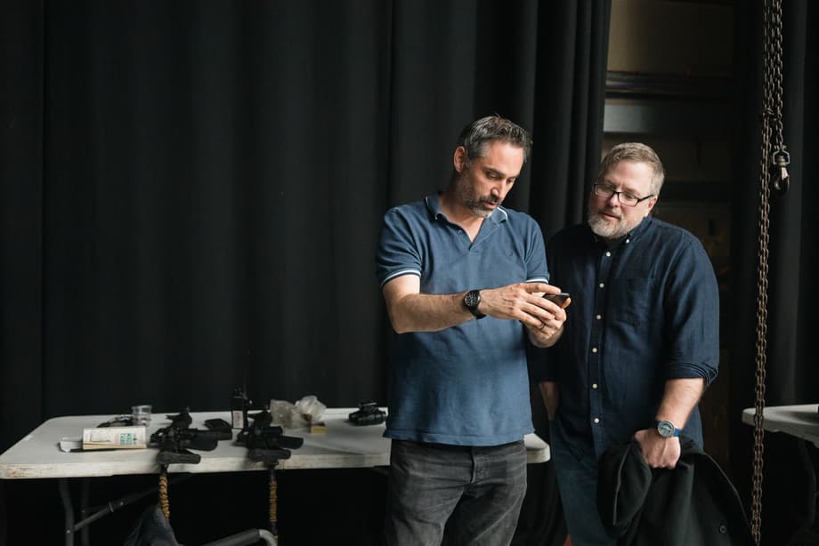 Academy Award-winner Natalie Portman and director Alex Garland discussing a scene.