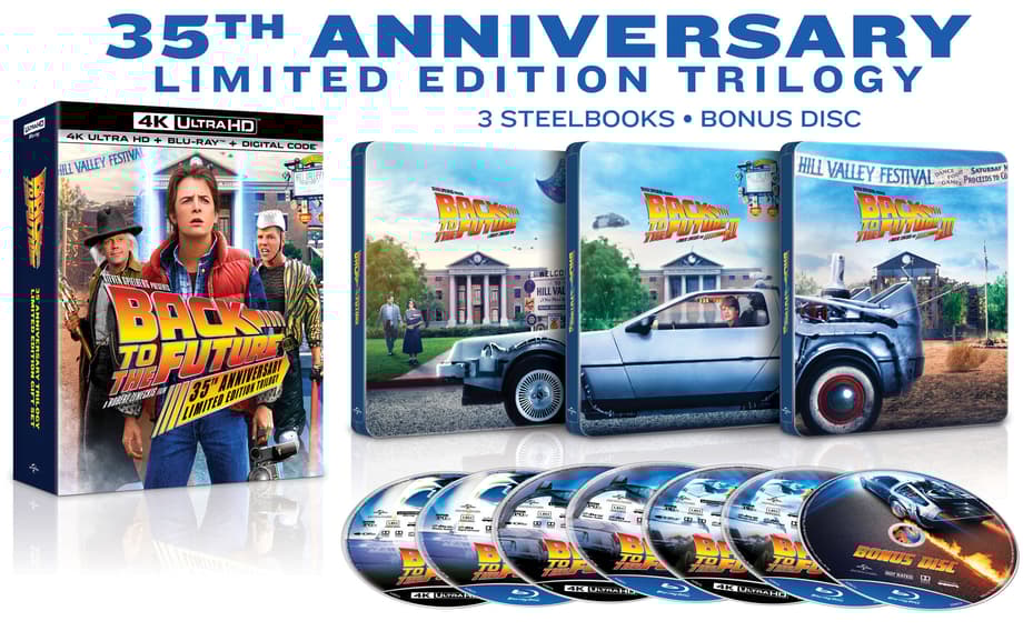 - BACK TO THE FUTURE 35TH ANNIVERSARY LIMITED EDITION TRILOGY (4K UHD): Includes three newly designed steelbooks (Best Buy Exclusive)