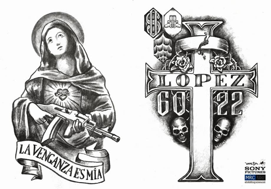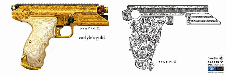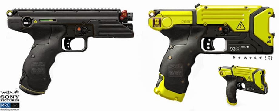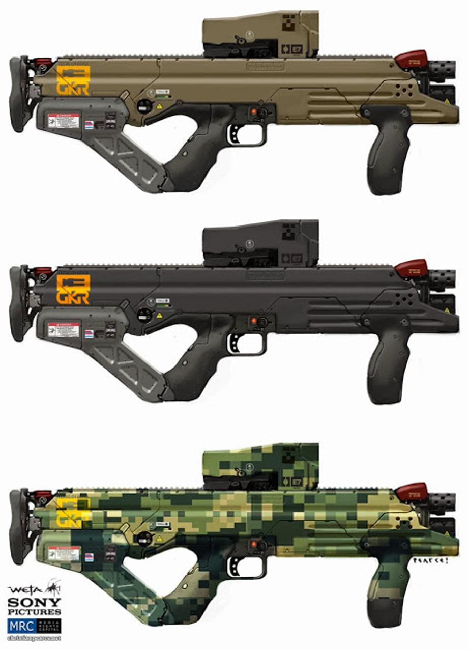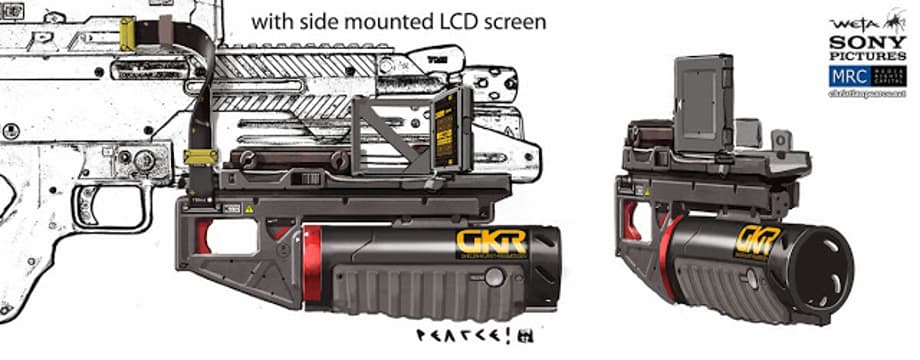 Conceptual illustrator, Christian Pearce, has updated his website with more concept art that he created for Neill Blomkamp's sci-fi actioner, Elysium. Including designs for weapons and tattoos.
