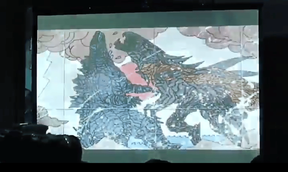 "As you can see above, the new monster is seen fighting with Godzilla in an ornate ancient pictogram. To the left, fans can see Godzilla as he takes a hard knock to the chest. However, the figure on the right is the one fans have yet to see before."