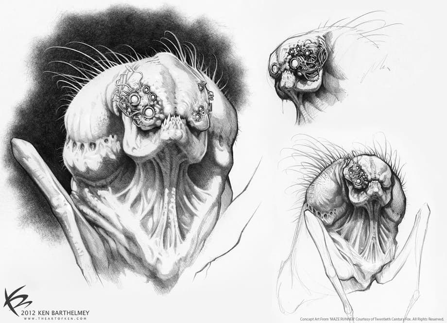 Concept artist Ken Barthelmey updated his official website with concept art he created for 20th Century Fox's The Maze Runner. Come see various creature designs for the Grievers.