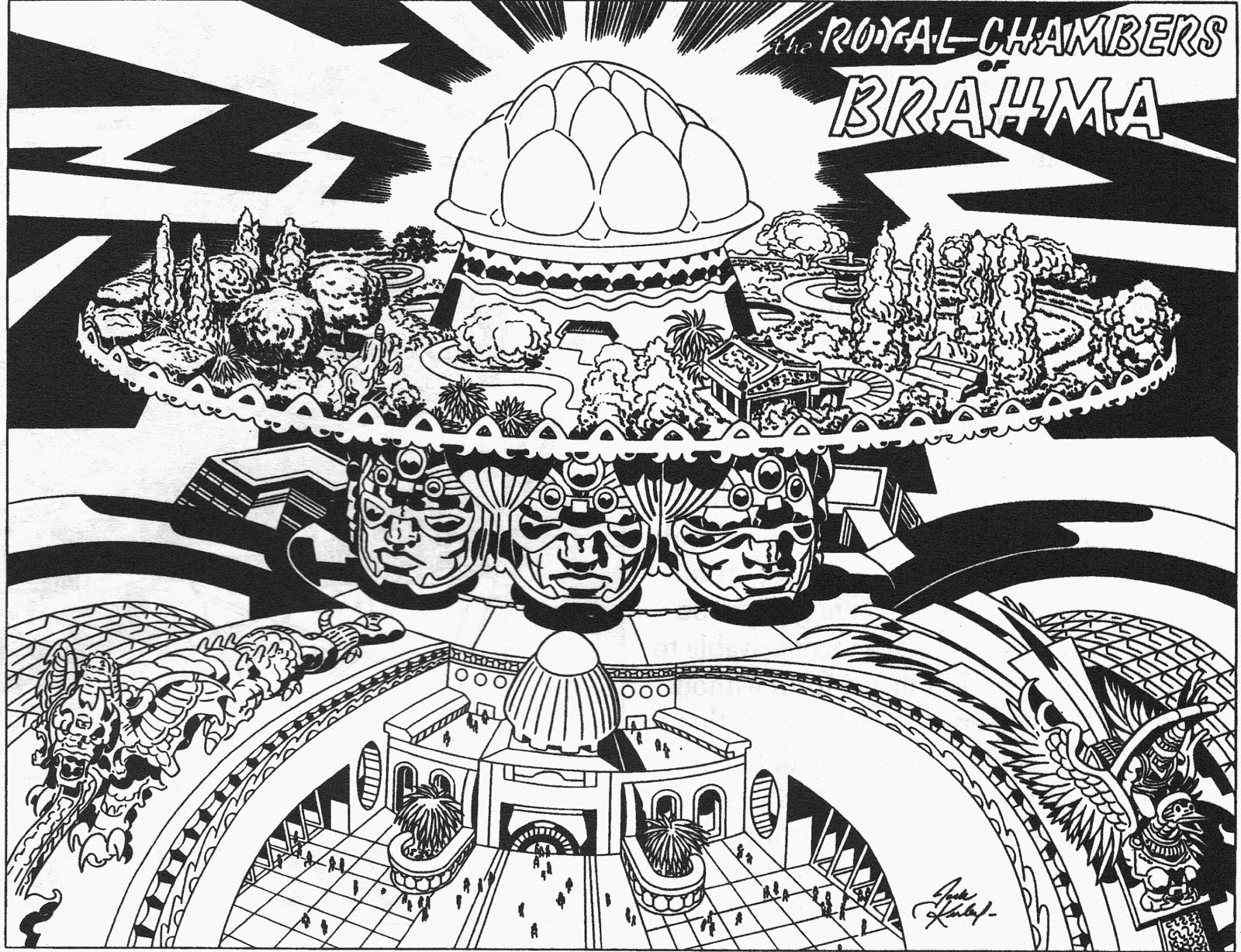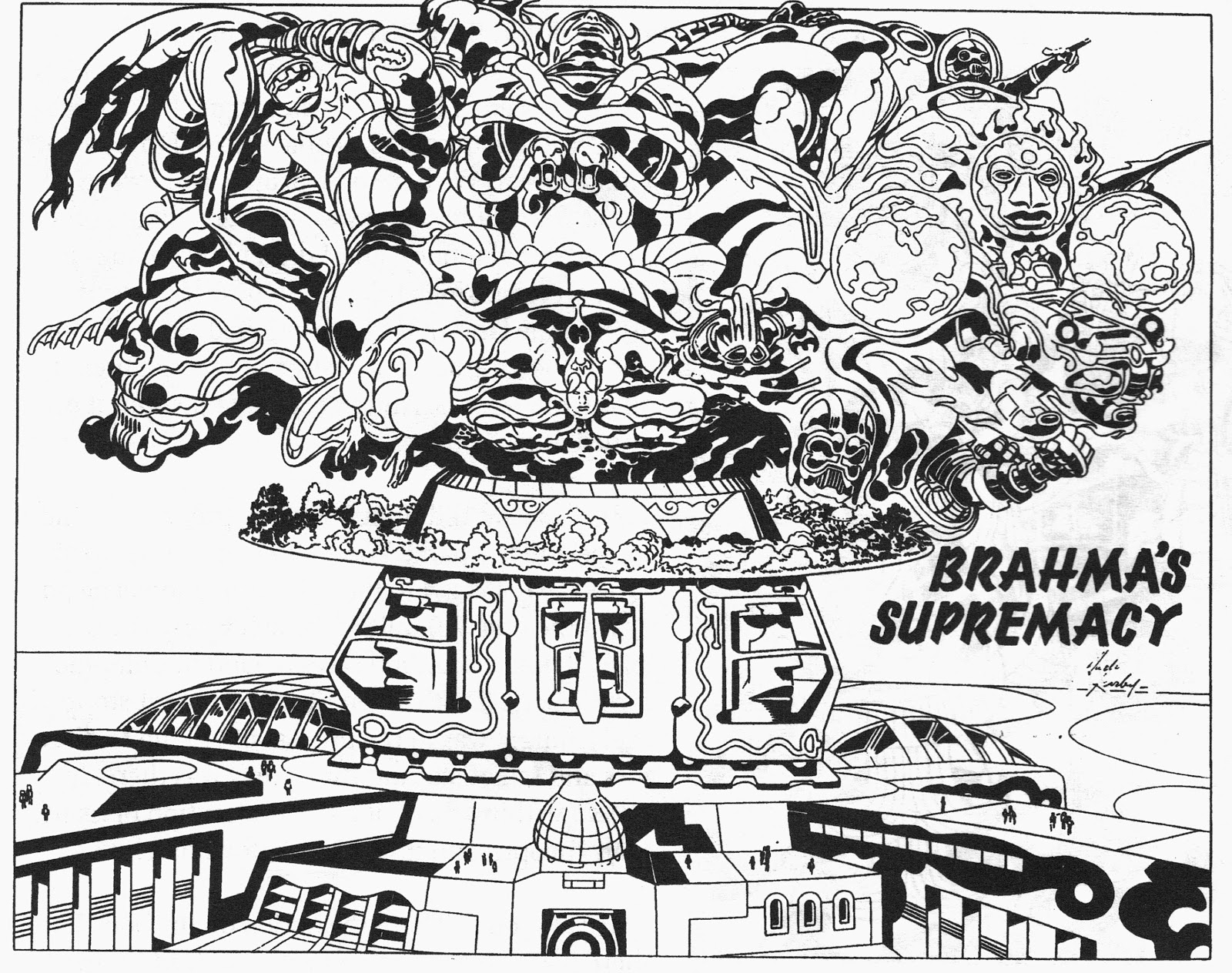 All they needed now was a film — and Chambers had the perfect script. Months before, he had received a call from a would-be producer named Barry Geller. Geller had purchased the rights to Roger Zelazny’s science fiction novel, Lord of Light, written his own treatment, raised a few million dollars in starting capital from wealthy investors, and hired Jack Kirby, the famous comic book artist who co-created X-Men, to do concept drawings. Along the way, Geller imagined a Colorado theme park based on Kirby’s set designs that would be called Science Fiction Land; it would include a 300-foot-tall Ferris wheel, voice-operated mag-lev cars, a “planetary control room” staffed by robots, and a heated dome almost twice as tall as the Empire State Building. Geller had announced his grand plan in November at a press conference attended by Jack Kirby, former football star and prospective cast member Rosey Grier, and several people dressed like visitors from the future. Shortly thereafter, Geller’s second-in-command was arrested for embezzling production funds, and the Lord of Light film project evaporated.