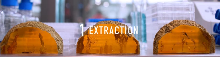 Using sophisticated DNA sequencers, our scientists analyze the DNA sample to map the entire dinosaur genome, arranging millions of pieces of genetic code into dinosaur chromosomes.