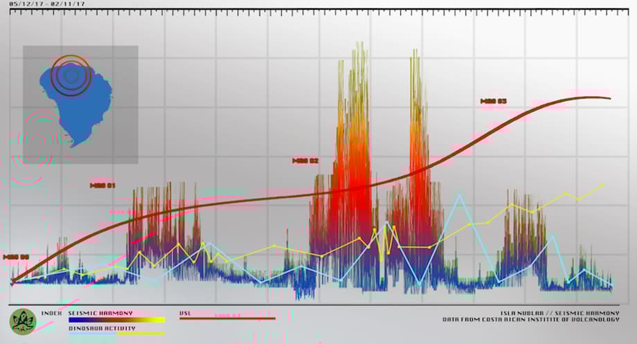 A chart measuring the recent volcanic activity of Mt. Sibo on Isla Nublar.