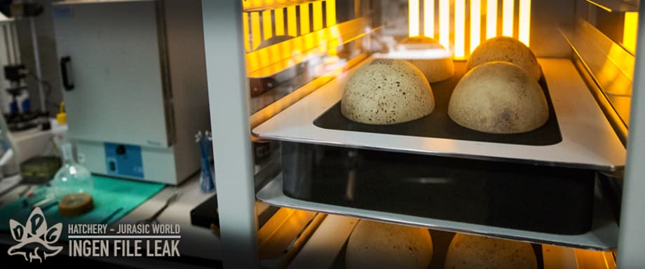 Here's the first of three "leaked" photos from the InGen labs as we see some dinosaur eggs being artificially incubated.