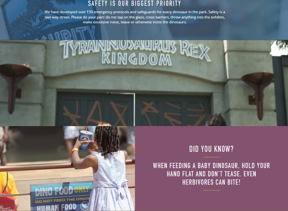 I enjoyed the section listing all of the dinosaurs that are at the park. At the moment, only three of the dinosaurs (tyrannosaurus rex, triceratops, apatosaurus) have profiles that can be viewed. Of course, it wouldn't be Jurassic Park if there wasn't a glitch. The viral video, which you can view below, promotes Hilton hotel as the premiere destination for park-goers, but the sound doesn't work. Even without the sound you'll get the gist of it.