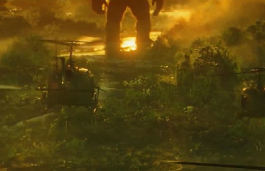 Lastly, it looks like Kong will be BROWN! You can see this in the hair color when his hand swats a helicopter out of the air, and slightly when he is rummaging through the palms trees in the previous picture. This goes along with producer Alex Garcia, stating that Kong is very much considered to be “his own species.”