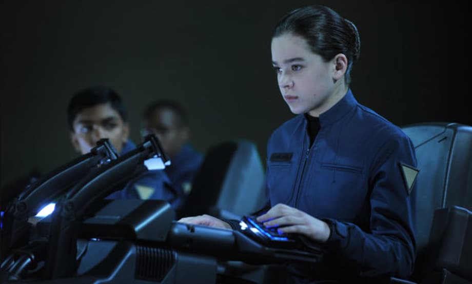 Check out some new pics from the upcoming adaptation of controversial author Orson Scott Card's classic sci-fi novel, giving us new looks at Harrison Ford, Hailee Steinfeld, and one new snap featuring Ender (Asa Butterfield) leaping into action, guns blazing.
