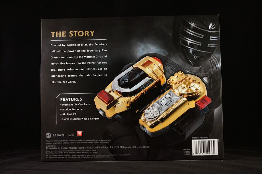 Created by Zordon of Eltar, the Zeonizers utilized the power of the legendary Zeo Crystals to connect to the Morphin Grid and morph five heroes into the Power Rangers Zeo. These wrist-mounted devices use an interlocking feature that also helped to pilot the Zeo Zords. The Limited Edition Power Rangers Zeo Zeonizer Legacy Zeonizer, Zeo Gold Ranger Edition is a toy original Zeonizer. Featuring quotes straight from Jason Lee Scott, premium die cast parts, motion activated sound effects and show accurate lights & sounds for all six Zeo Rangers the Legacy Zeonizer, Zeo Gold Ranger Edition is perfect for display or cosplay. Go Go Power Rangers! SDCC exclusive..