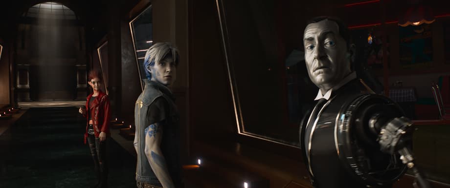 (L-R) OLIVIA COOKE as Art3mis, TYE SHERIDAN as Parzival and The Curator in Warner Bros. Pictures', Amblin Entertainment's and Village Roadshow Pictures' action adventure "READY PLAYER ONE," a Warner Bros. Pictures release.