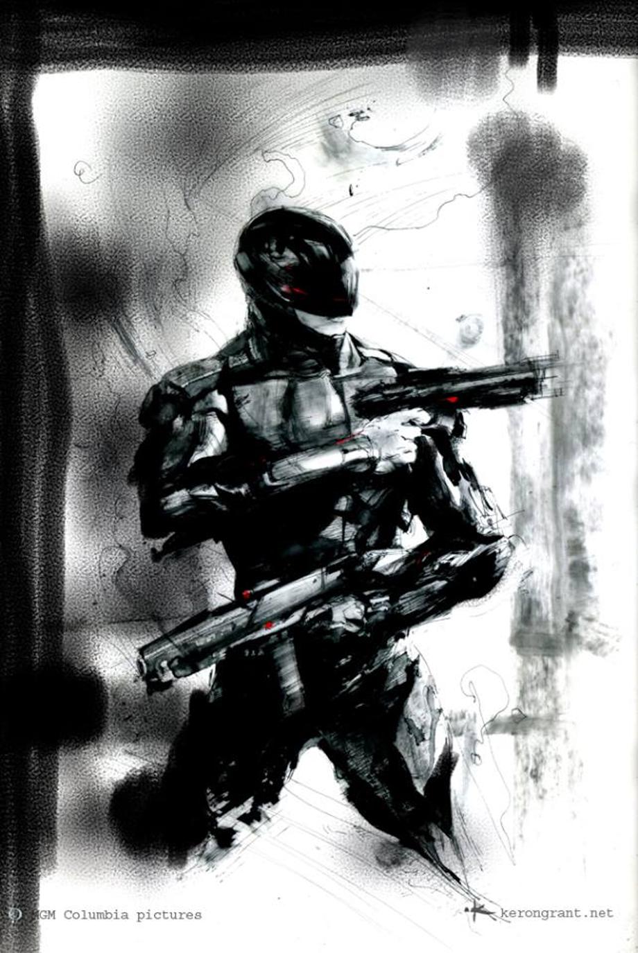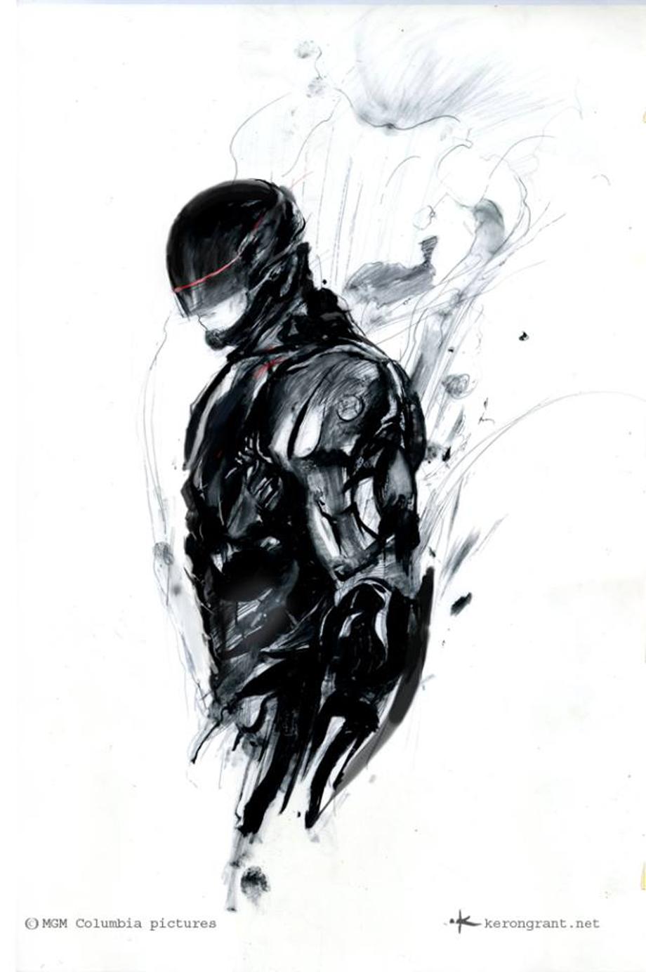 Conceptual illustrator, Tim Flattery, sent us two pieces of concept art that he created for Jose Padilha's RoboCop. They're designs for the bike, which ended up being a modified Kawasaki Ninja. Plus, two developmental sketches that artist Keron Grant did for the film.