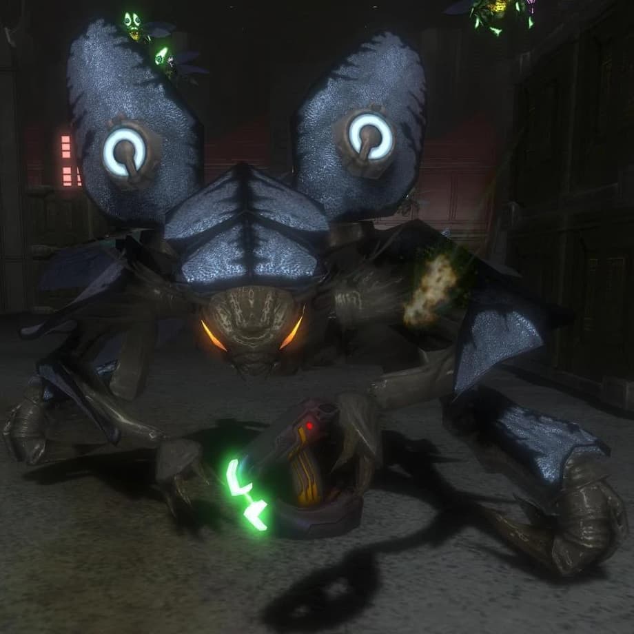 Chapter 16 — STATION INFILTRATION: The loud thud of Excelsior getting pulled down by artificial gravity echoes throughout the station, we see shots of various corridors wherein we hear it reverberate. One of the shots happens to be occupied by two Arthrosian junkers eating trash, then hearing a faint echo, with a very District 9-influenced hyperfocal effect focusing in on its curious face. "You think they heard that?" Johnny's tactical space helmet retracts neatly into a backpack beside his oxygen tank, "You think they're expecting people like us? Get ready to unleash hell on the hive." A viridian-armored Arthrosian hovers loudly through an organically polluted corridor to investigate the noise, stopping when it spots something odd laying between the cargo crates that litter the floor. The camera angles up to view an MB-SG1 laying flat, connected to a long, blue, wavy hose, and for the last two seconds of its life the Arthrosian cocks its head in confusion, Reed bends his wrist and the gun angles up, filling the onlooker with deadly spores. Elsewhere we see meddling space bugs flattened instantaneously by invisible planes, the flies are literally dropping like flies and, if not for lack of brain capacity, the aliens don't understand what's happening to them.