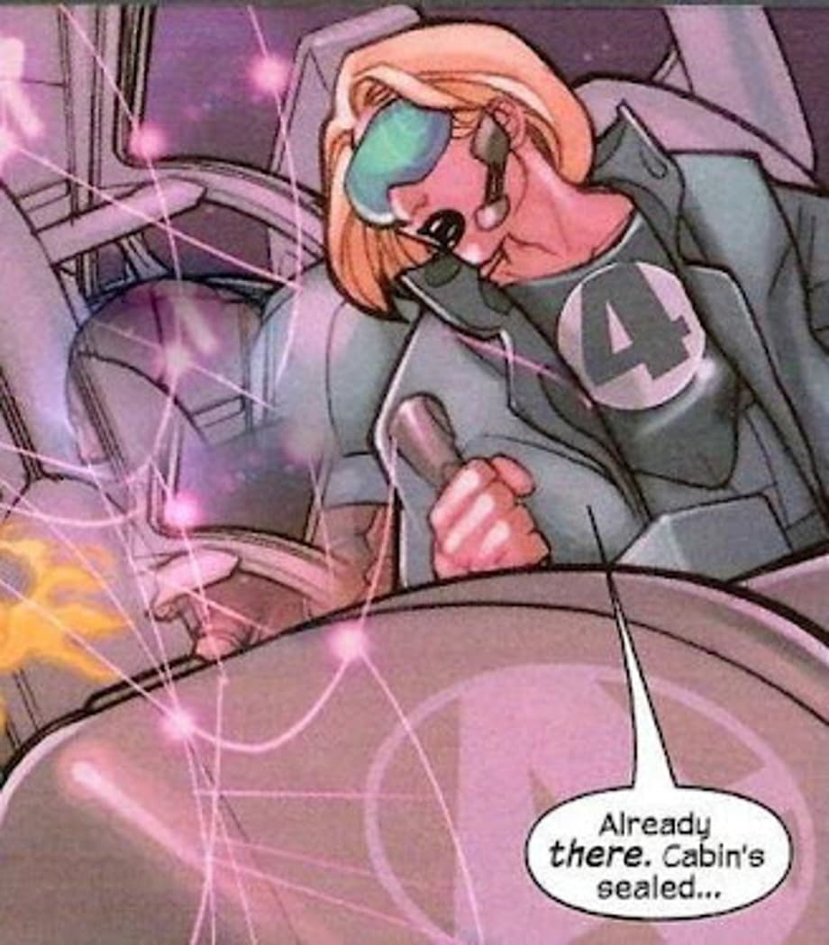 "Where are you guys," Sue's ungloved hand runs across the cartographic digital map in front of her face, she's back at NASA's MISSION CONTROL combing through all known parameters of the Zone for any signs of them, refusing to rest while her duties as matriarch to the Four have not yet been fulfilled, her father displays a similar sense of stubborness as they try to locate Johnny and Reed. "I thought we had everyone aboard, believe me had I known that they would—" "Save it Sue, you aren't accountable for their actions. What do the latest scans say?" "They're saying The Gideon Trust is ...gone. It just disappeared somewhere over the DISTORTION AREA." Alyssa chimes in from the far side of the room, "That's a massive dead zone, every probe we send there loses signal, we may never know what lies on the other side." Franklin's weathered looks grow wearier by the second, meanwhile back down on NASA's ground floor Gary Richards and Meribeth Richards aren't displaying an ounce of patience in the unexplained absence of their son. "What are you telling us here? What—what garbage are you feeding us? Tell me what happened to my son." Lumpkin tries to keep the situation calm, takes his coat off and physically prevents Gary from entering the same room as Franklin, but fails to hold him back. "Mr. Richards, there's little else I can add to what I've already told you." "Drop the formalities, Storm. You're a doctor right? Isn't it your job to be the bearer of bad news, tell us what happened to our Reed." "Alright, you gave us access to this facility, total transparency is the least you deserve. Your son and mine are still aboard The Trust, but the outpost itself has fallen beyond the realm of retrievability, and them along with it." "Fetch me my spacesuit, dear. I'm going in after them." "Gary, oh stop. How long, Dr. Storm? The longer we wait—" "The sooner we go back the more likely it is we'll encounter more of those things, en masse." "Every hour we wait, we waste." "I was held captive for days, not hours. And if we made any sorta men out of them, they'll do what men have done for centuries: perservere." "You just aren't listening to me." "No you aren't listening, Mrs. Richards! We just kicked the hornet's nest, if we launch a search party now we'll endanger everybody, the Annihilation Wave is just waiting to get that foot in the door!" "You think you can talk to my wife that way..." Gary hurls a metal stool, which ricochets against the iridescent barrier that instantly appears between them, the retired astronaut then turns around and starts giving the orders. "You're wrong! Someone get Grimm on the horn!" Susan lowers her defences.