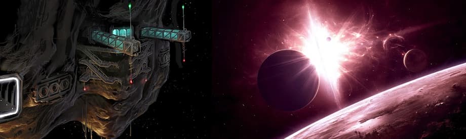 Reed drops the omni-tool, "Alright it's all set, now can someone shut those blinds? It's a holograph so it needs relative darkness in order to work." No one gets up, "Please, don't everyone get up all at once." Reed raises an arm to close the blinds from where he's seated, but his dad and sister's eyes are now fixed on the limb. "Johnny, do you mind?" "You're afraid to show your powers off in front of the fam? Understandable. You folks ever been to an arcade? You know the tatted-up Buddhist guy in Street Fighter 2? It's pretty much like that." When the room goes dark the miniature holo gets activated, a flurry of star constellations burst out into the headspace of their living room. "Woah, is that... the other star system?" "SOLES AETERNUM, like ours it has eight planets: Tyanna, Kestor, Arthros, Krysok, Argor, Mantracora, Ootah, and Tarsuu." His hand cues the holograph to zoom in on the most massive celestial body: "ARTHROS, the barren protoplanet that once habitated the aphid lifeforms known collectively as the Annihilation Wave, until its core shattered across the cosmos and its denizens adapted to survive in the asteroid belt that formed in its wake."