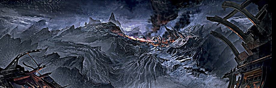 CHAPTER 17 - The Cryosphere Awakening: We horizontal pan through a dense snowstorm blowing viciously through an uncharted terrain, with chunks of broken metal braces formerly adjoining THE GIDEON TRUST jutting out in the foreground like the ribcages of an elephant graveyard, while low visibility whiteout conditions obscure distant fires in the background. Barely discernible from the rest of the wreckage but miraculously still intact, Johnny Storm is the first to emerge from the escape pod, clutching fast-melting snow in his hands and prying himself out, Reed's foot is stuck inside so he's heaved by his arms like a taffy puller until they're both free of the lifesaving capsule. Standing shoulder to shoulder, Mr. Fantastic and the Human Torch look desolately out into the snowy wastelands, "I think we've officially gone off the reservation, my friend. The distortion area was.. nothing short of indescribable." Johnny heaves up his lunch, "If not somewhat nauseating." Spitting fire into snow, he leaps back down into the lifepod to retrieve his MB-SG1, "You're the expert on everything extra-dimensional around here, where the hell are we now?" Reed takes in his surroundings, "Judging by the tectonic glacial land formations and inhospitable weather conditions, the likeliest candidate would be TYANNA, the rogue planet, otherwise we could be standing on an icecap of the waterworld TARSUU, the outermost planet in the system. Both remote, both largely unexplored. Gravity?" He jumps up and down, "Feels like a 1.03 standard G's. Comfortable. The atmosphere? Oxygen, nitrogen, water, ammonia, methane, Co2. Breathable, but too thin to support to life. Theoretically we should've experienced symptoms of carbon monoxide poisoning minutes ago." "Great." "Although our metahumanity could be allowing us to adapt to these environmental extremes." "Well, on top of not knowing our own whereabouts and the thought of my lungs assimilating to an ice planet, something else just crossed my mind." "Yeah?" "If we don't know where we are, how long until our folks back home realize where we are?" "...Something tells me that just crossed their minds, too."