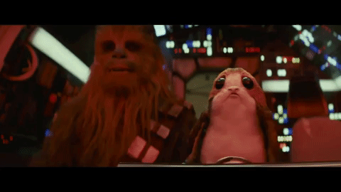 Then, right at the end we see Chewbacca backhand that same Porg we see him share a war-cry with the trailers. Okay, so he actually just moves the little guy aside in a forceful manner, but still... harsh!