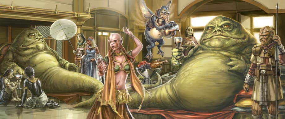 We know Jabba the Hutt met his end at the hands (and chain) of "slave Leia" in Return of the Jedi, but he wasn't the only slimy piece of worm-ridden filth in the galaxy. Some of his fellow Hutts were glimpsed in The Phantom Menace, and have been a part of various Expanded Universe novels, animated series, comics etc over the years, and now it seems we'll be meeting them again in J.J. Abrams' The Force Awakens. According to Dave Gonzalez of Latino Review, these Hutts are being practically built for the movie just like Jabba was for ROTJ, and although he doesn't know how many will feature, it'll definitely be "more than one". As for how they'll factor into the story, all speculation is welcome -- though some very early concept art did depict Leia meeting with the Hutts, possibly to explain why she murdered one of 'em! Could that be what we see in December when The Force Awakens hist theaters? Share your thoughts in the usual place, and be sure to click the link below for some more Star Wars related tidbits.