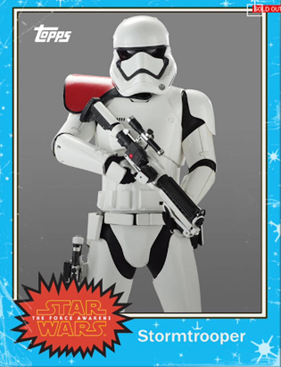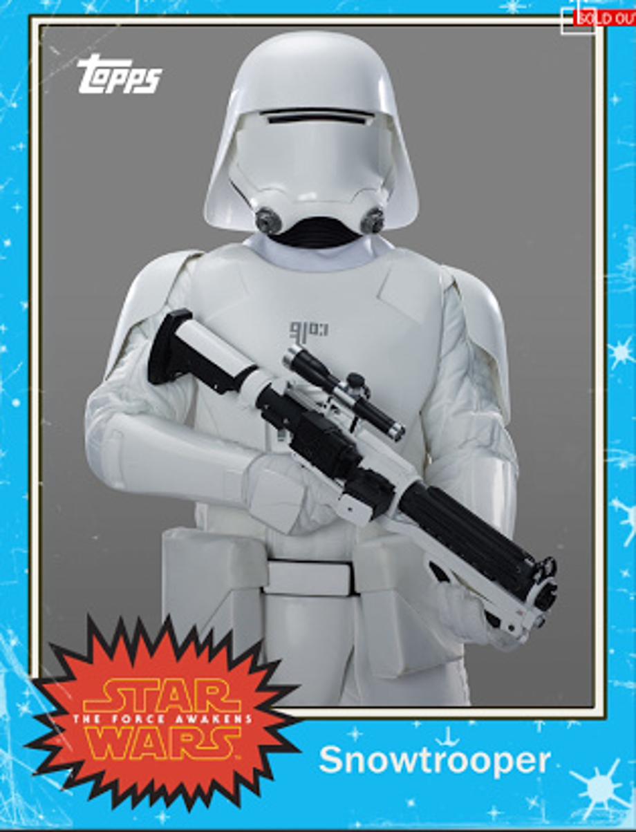 And this time it's not promo art! Courtesy of the Topps Card Trader app, we have brand new live-action character shots of Rey, Chewie, BB-8, Kylo Ren, Captain Phasma, C-3PO, R2-D2, and 2 different versions of the First Order Stormtroopers. Check them out after the jump...