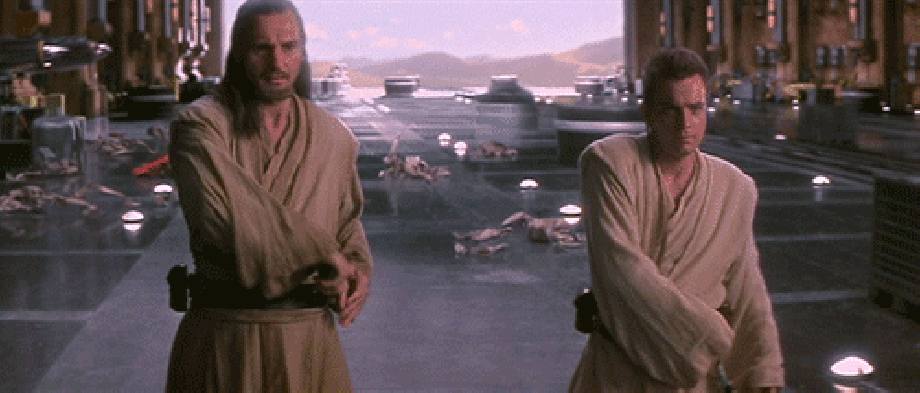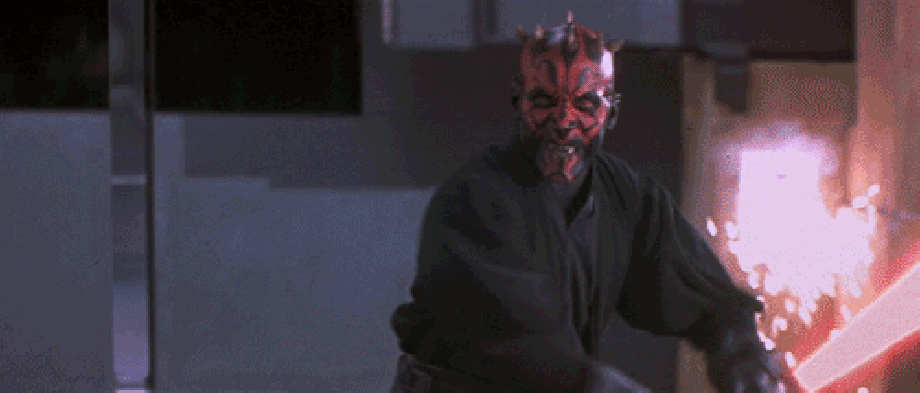You'd think two skilled jedi would easily take Maul but Maul is no softie with his double bladed lightsaber he bashes the two jedi around and leads them deeper into Theed's plasma refinery complex, making the duel risky as either opponent could fall off the catwalks they fight along.