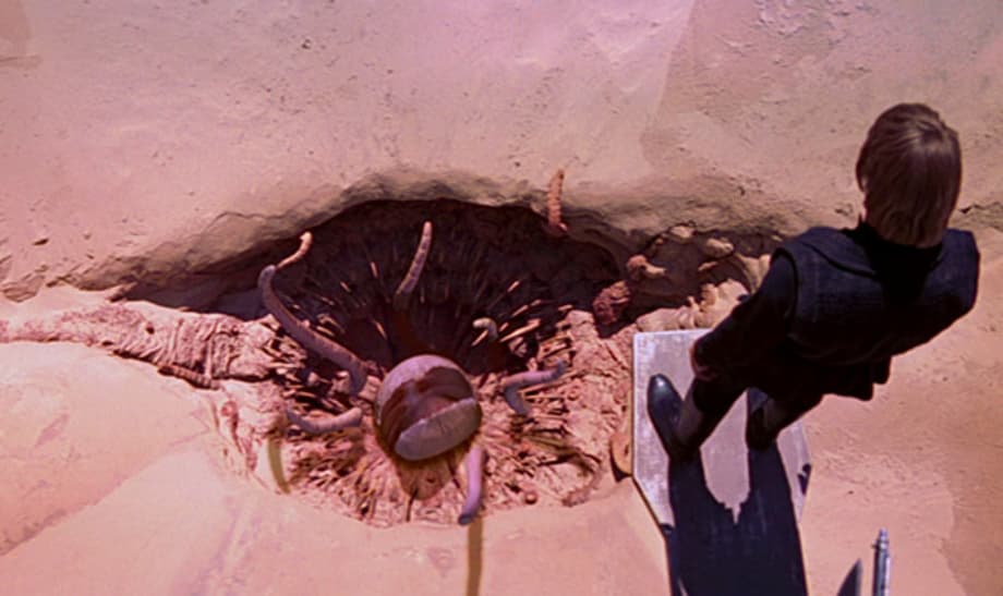 So Luke and co are transported through the Tatooine sand dunes to the Pit of Sarlacc a beastie that burrows into a pit in the sand and swallows what ever falls/is pushed in, basically the mighty Jabba uses this as his excercussioner after the Rancor fails.