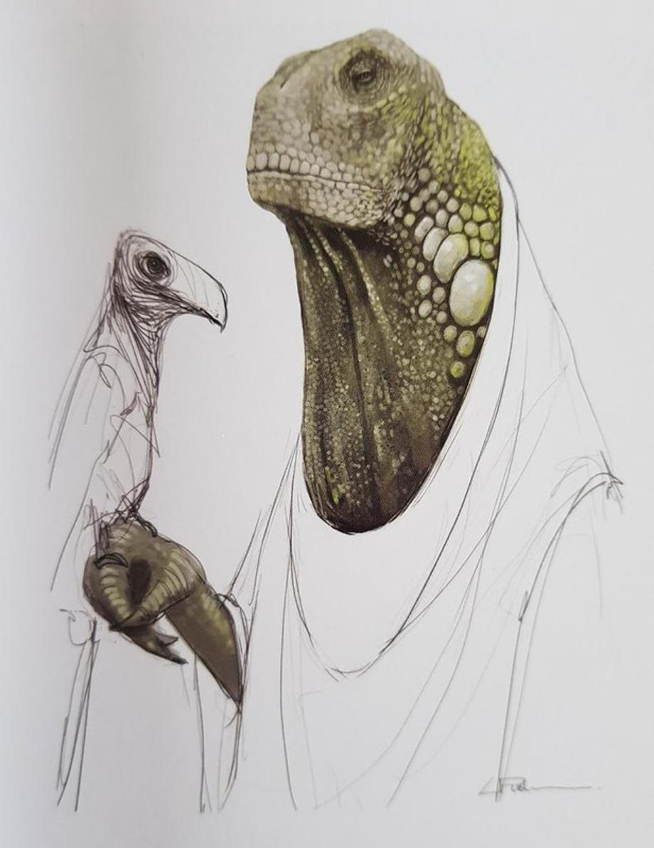 Well, this is pretty out there! Needless to say, a reptilian creature like this would have completely changed the character's dynamic and that final battle would have been much harder to pull off.