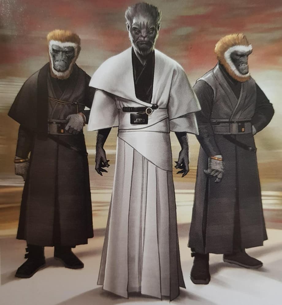 It looks like Lucasfilm really gravitated towards these cat-like designs for a while and given the appearance of Vos' bodyguards, that does make sense (he looks vastly more refined than those grunts).