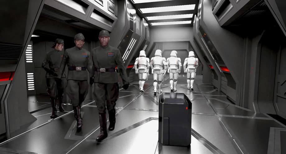 Here we see Finn, Rose, BB-8 and the duplicitous DJ ("don't join") making their way through a nest of First Order vipers in an attempt to sabotage the tracking system. The appears to be pretty much identical to what we saw in the finished film.