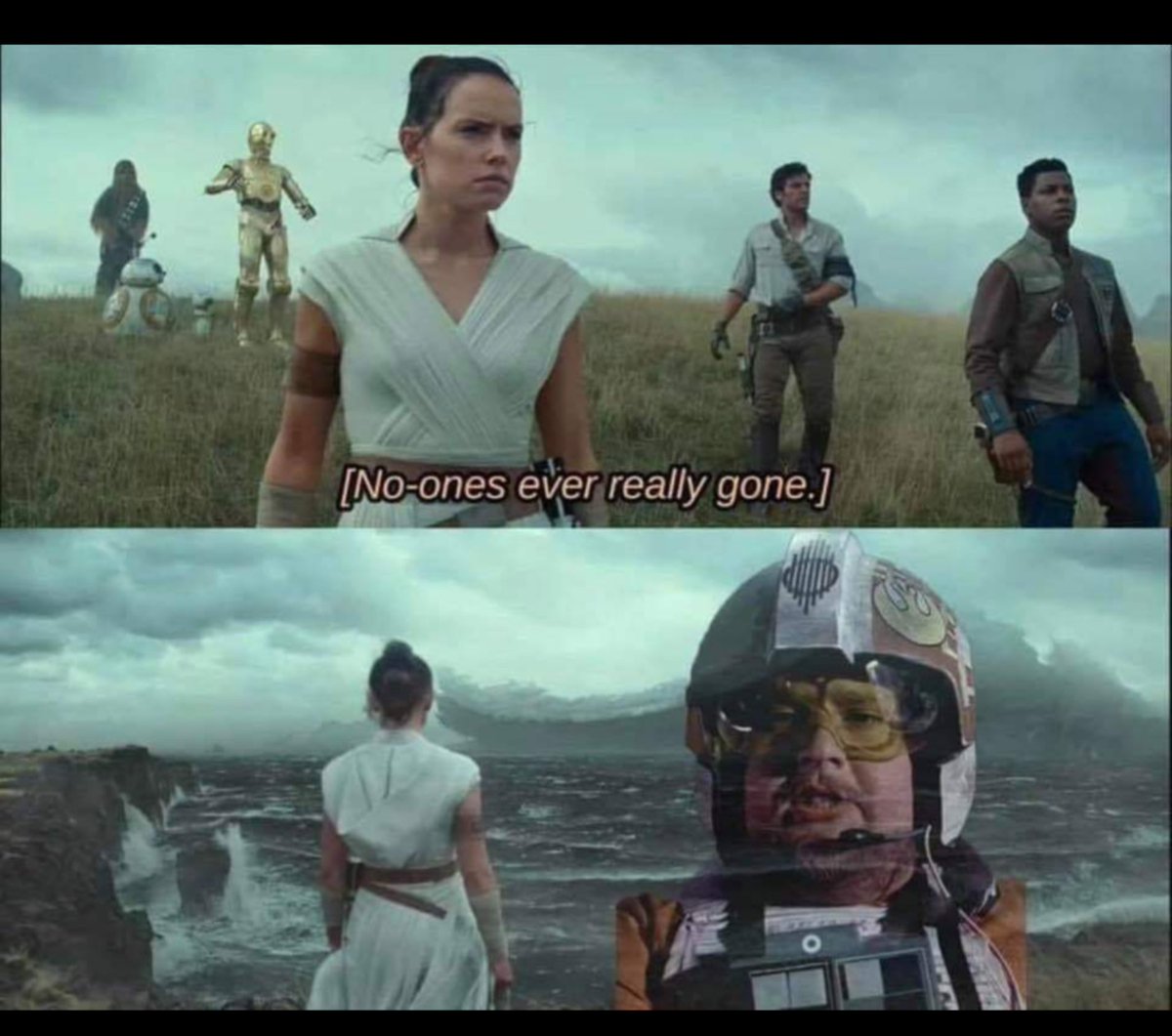 We get one final shot of Rey with an almost hopeful look on her face, as we hear Luke Skywalker tell his apprentice that the force will be with her.