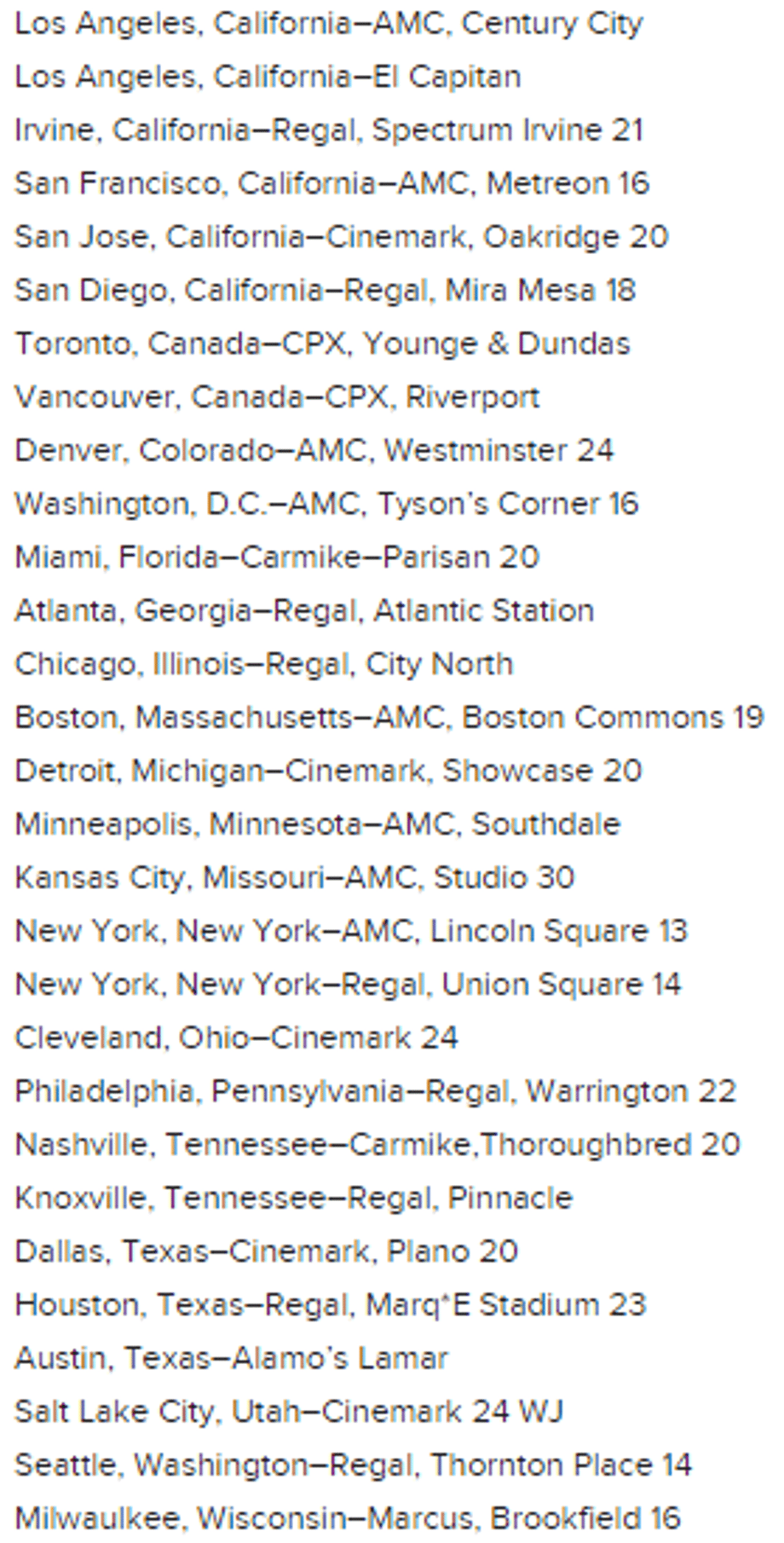 UPDATE: Here's the full list of theaters screening the trailer: