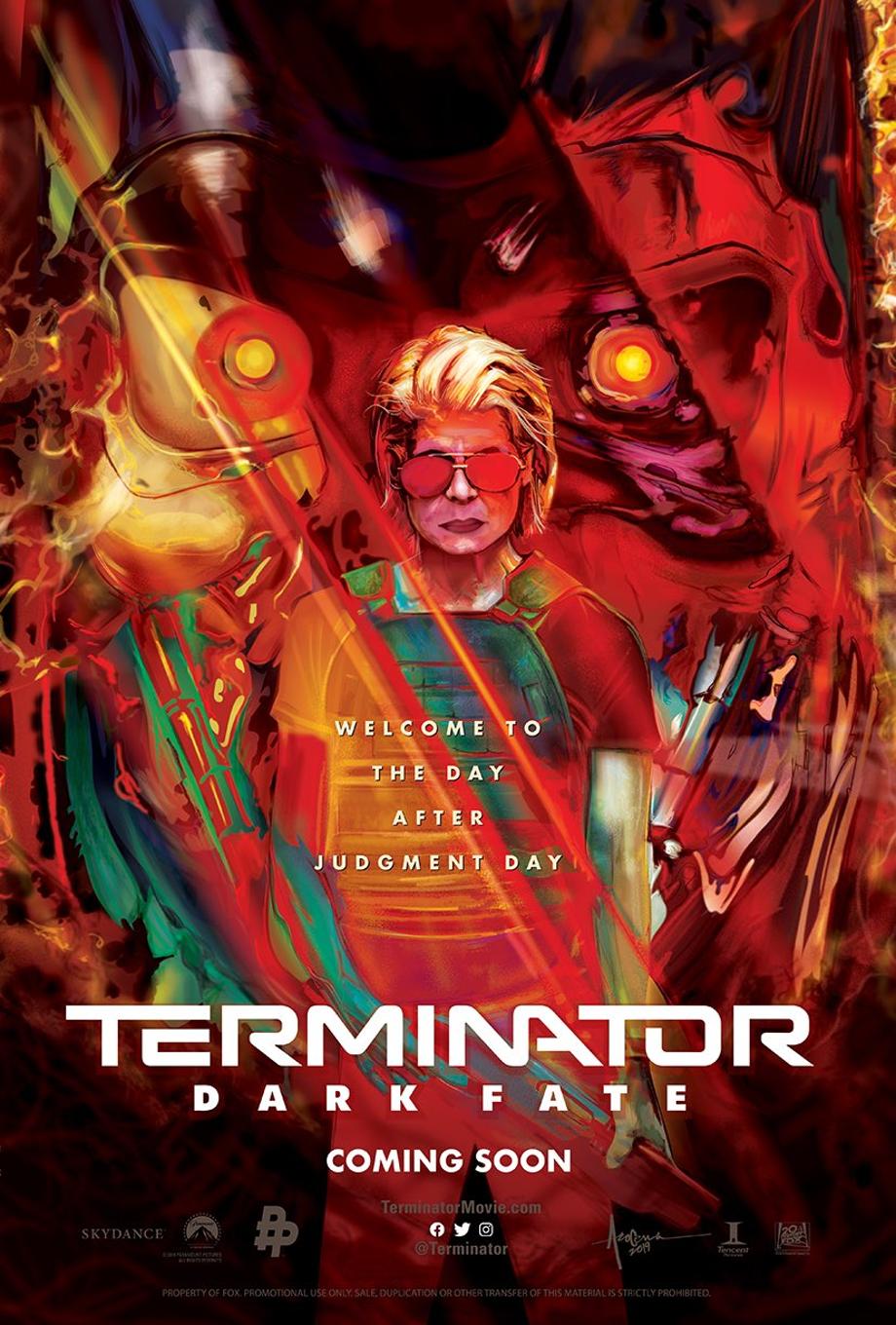 The upcoming film, which opens nationwide on November 1st (with preview screenings on October 31st), features the return of Terminator 2: Judgment Day stars Linda Hamilton as Sarah Connor and Arnold Schwarzenegger as the T-800 and will introduce key new characters played by Mackenzie Davis (Grace), Natalia Reyes (Dani Ramos), Gabriel Luna (Rev-9), and Diego Boneta (Miguel Ramos).