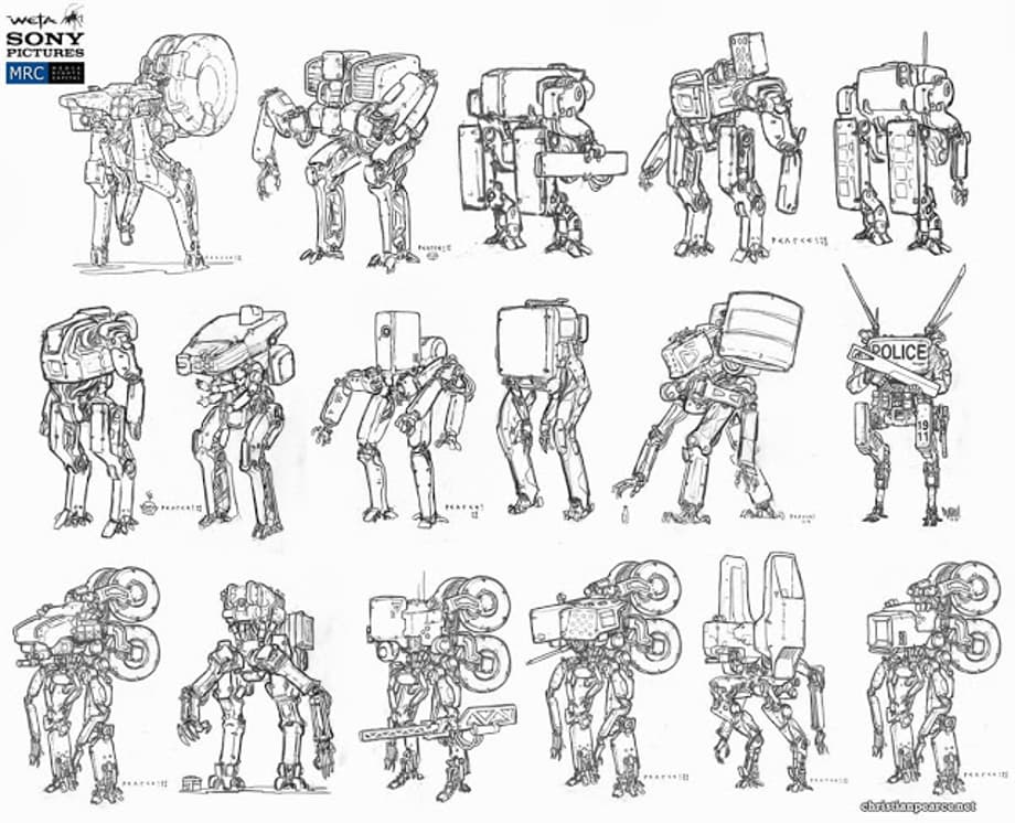 Conceptual illustrator, Christian Pearce, has posted a whole slew of concept art that he created for Neill Blomkamp's sci-fi actioner, Elysium. Including alternate vehicle and robot designs.