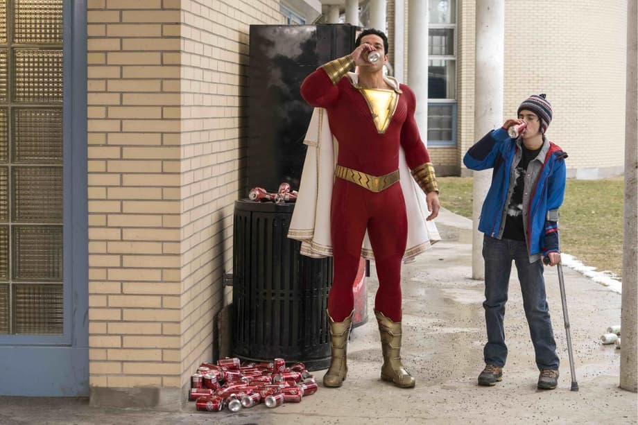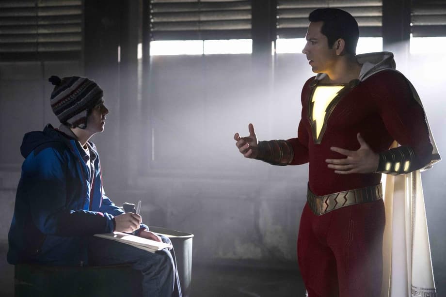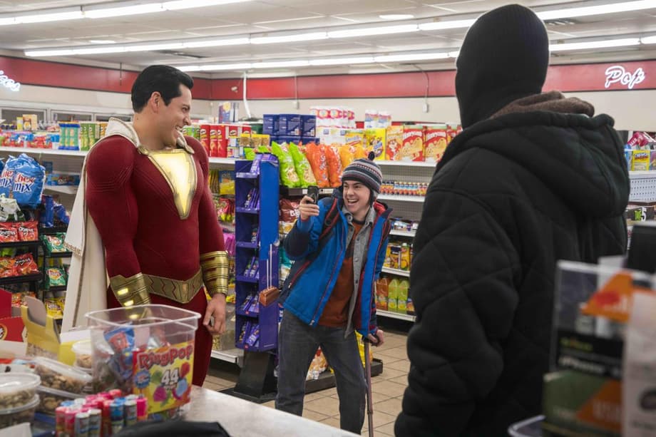 (L-r) JACK DYLAN GRAZER as Freddy Freeman and ZACHARY LEVI as Shazam in New Line Cinema’s action adventure “SHAZAM!,” a Warner Bros. Pictures release.