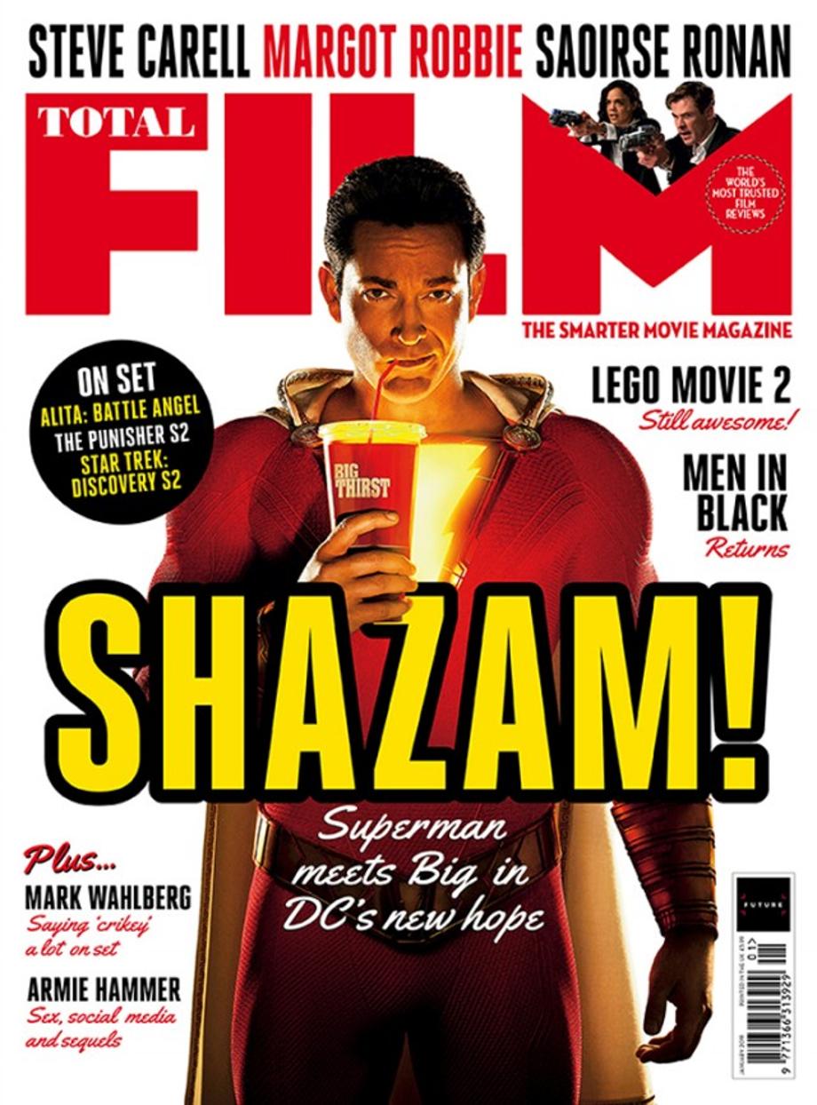 Zachary Levi's Shazam takes centre stage on a new Total Film magazine cover while we also have two new stills spotlighting the titular hero along with the villainous Dr. Sivana and young Freddy Freeman...