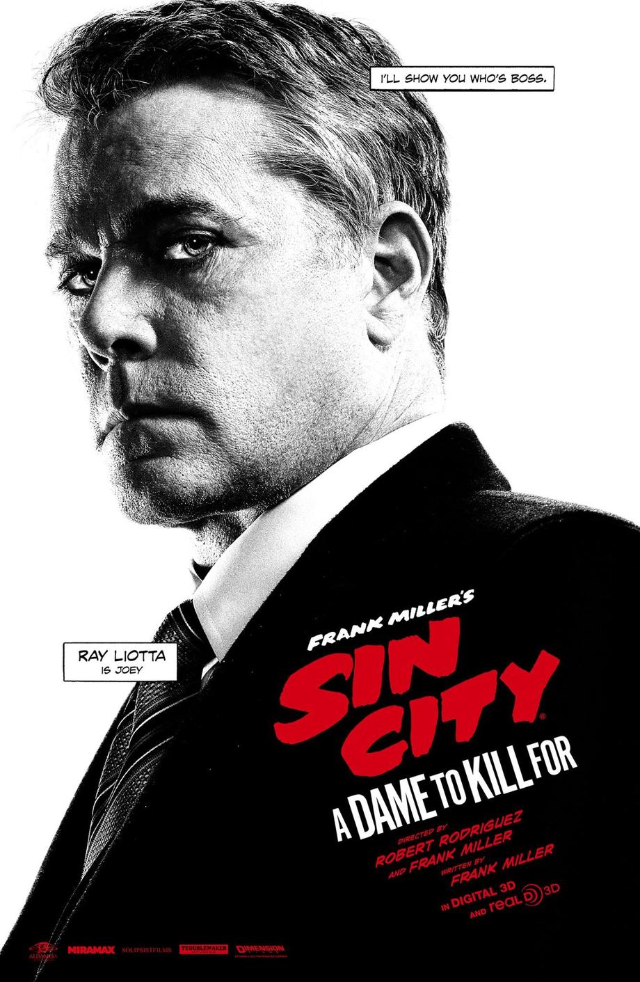 Sin City: A Dame To Kill For stars Mickey Rourke as Marv, Jessica Alba as Nancy, Bruce Willis as Hartigan, Rosario Dawson as Gail and Jaime King as Goldie/Wendy. New cast members include: Eva Green as Ava Lord, Joseph Gordon-Levitt as Johnny, Dennis Haysbert as Manute, Christopher Meloni as Mort, Jeremy Piven as Bob, Stacy Keach as Wallenquist, Jamie Chung as Miho, Ray Liotta as Joey, Juno Temple as Sally, Julia Garner as Marcy, and Josh Brolin as Dwight. The film arrives on August 22nd.