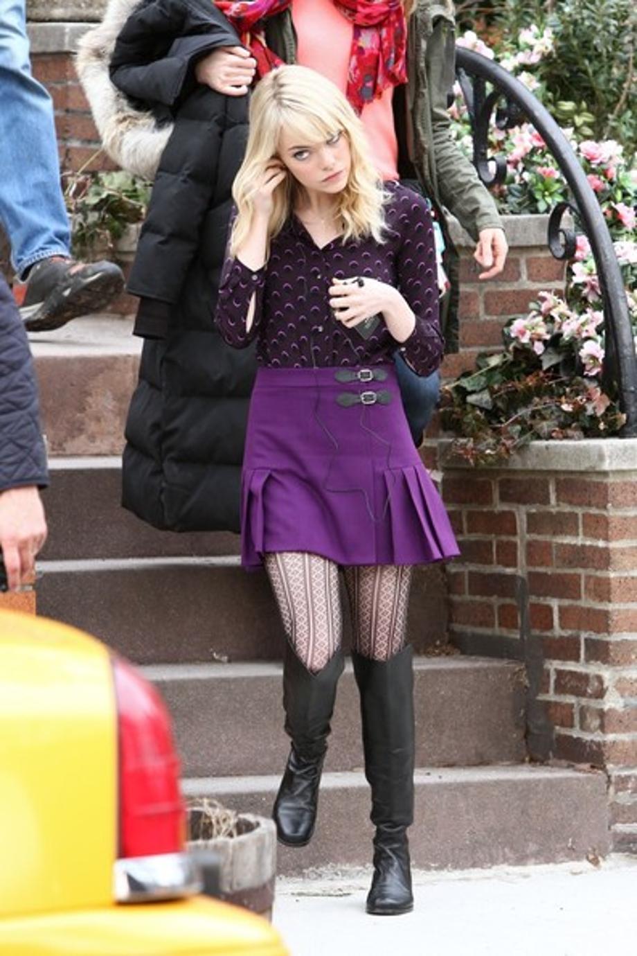 What the hell is with fashion these days, Emma's legs look great but the rest looks like your Aunt Mildred's closet.