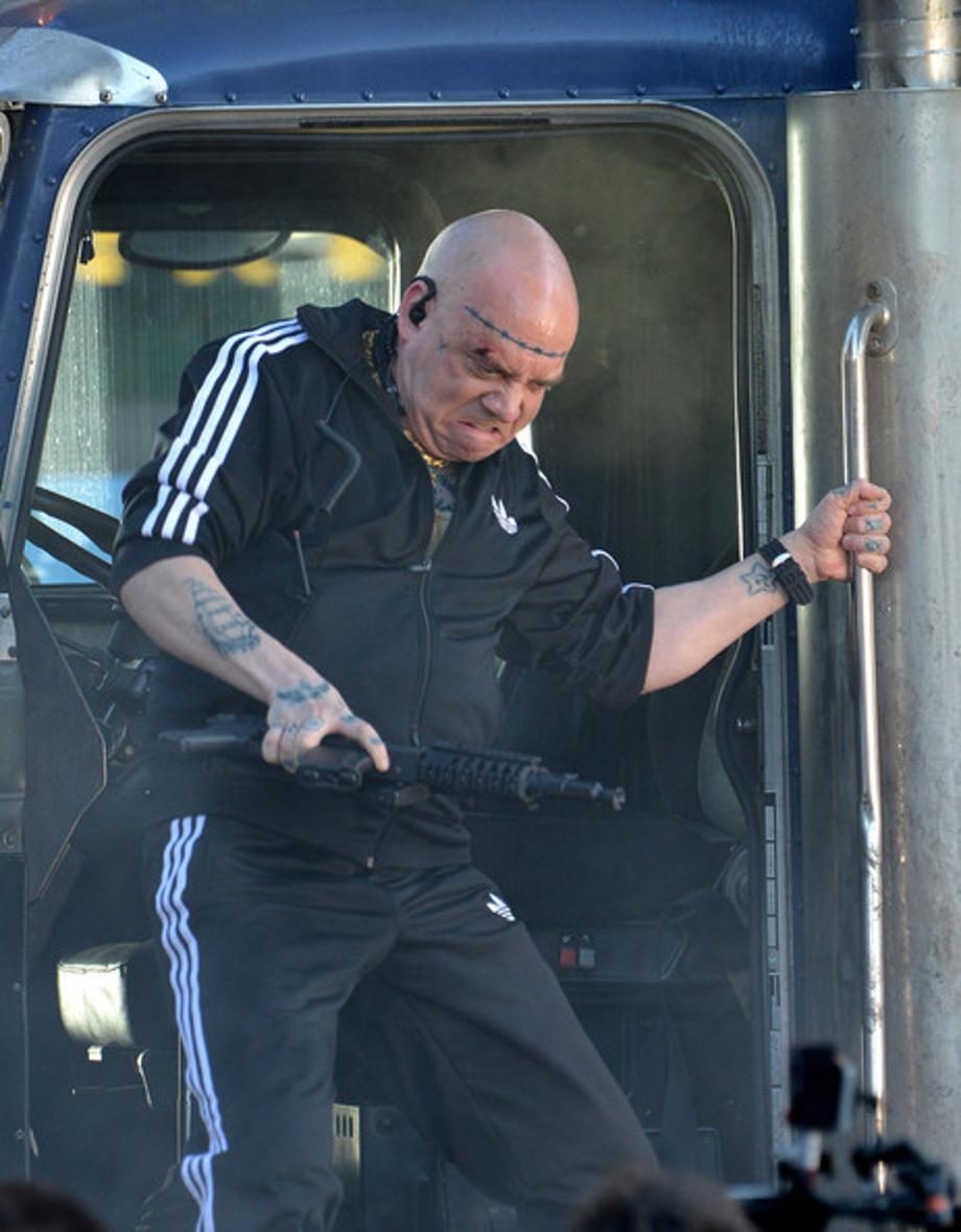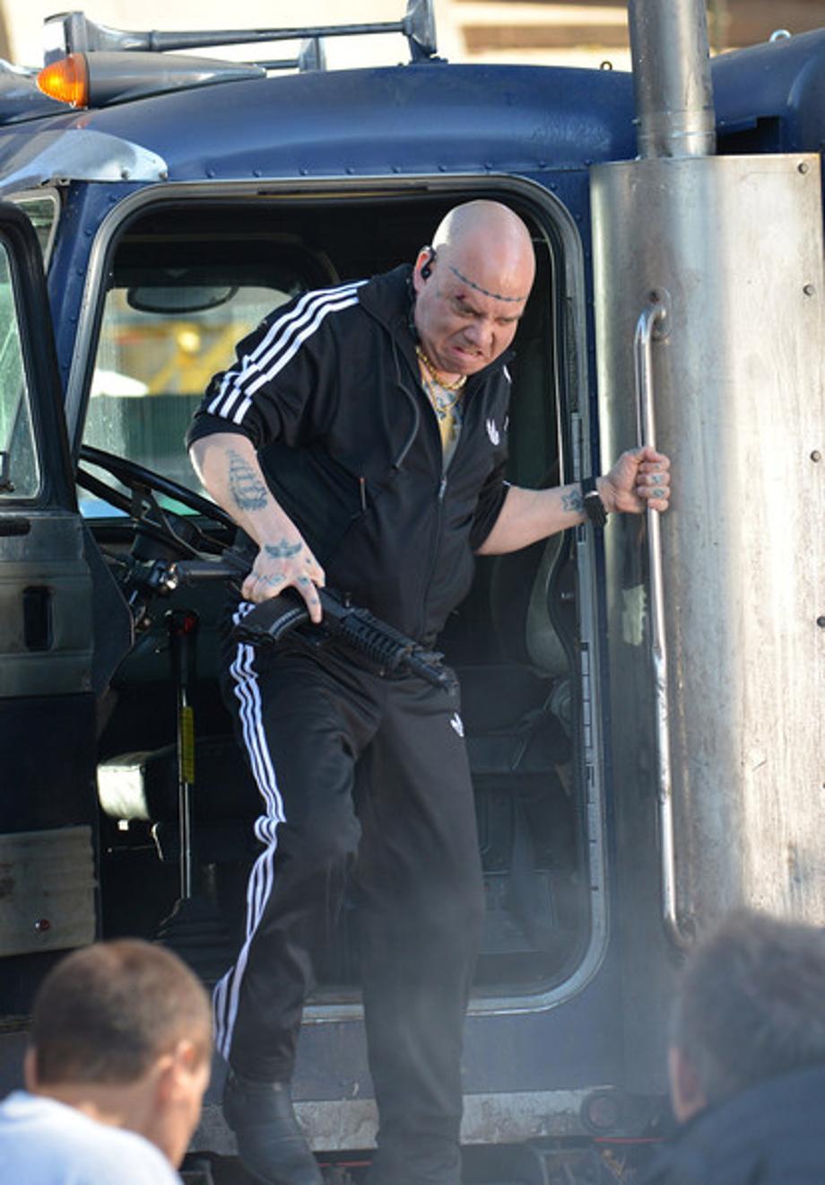 Today, in the Dumbo part of Brooklyn, Marc Webb filmed scenes involving Paul Giamatti's The Rhino/Aleksei Sytsevich with an AK-47, and Spider-Man coming to the aid of passengers in a distressed bus, that was advertising the Daily Bugle. Hit the jump to check it out.