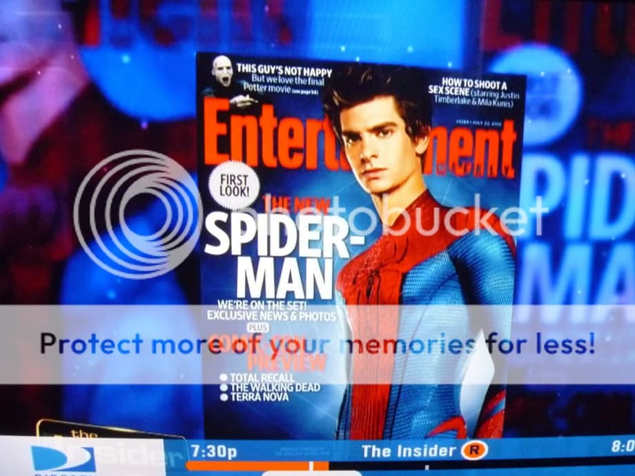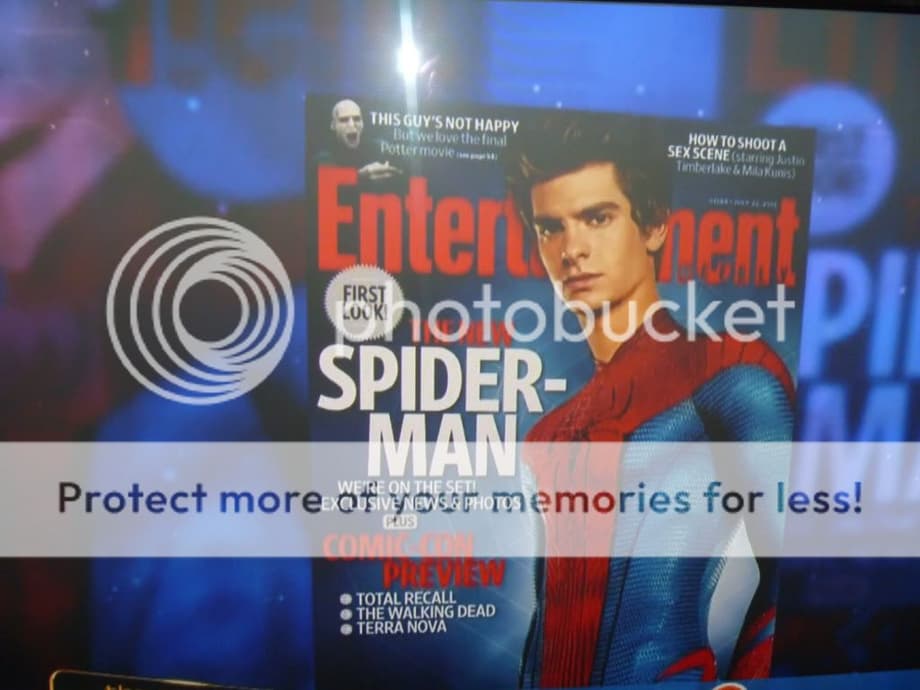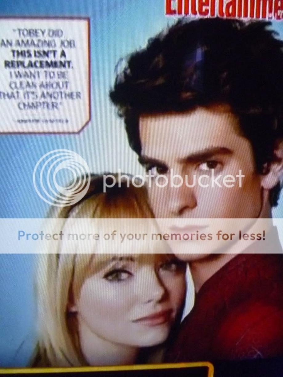 The Amazing Spider-Man are included in a new issue of Entertainment Weekly. Captured in fairly poor quality, check out Andrew Garfield on the mag's cover, and stills from the film including Emma Stone and Spidey's mask close-up, with a green figure in his eye!