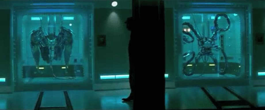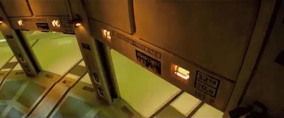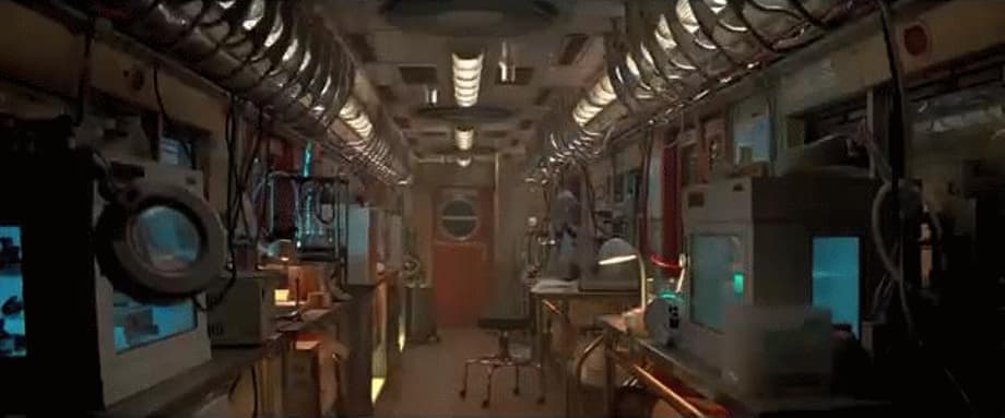 These doors open with green light behind them. Harry discovering Oscorp's Goblin gear?