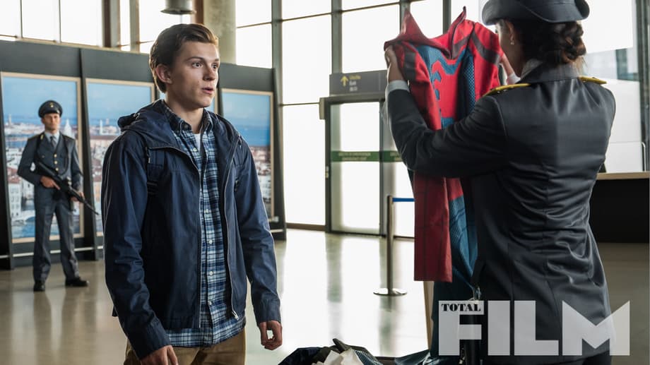 Now, another official image has been released, and this one features a very awkward exchange in the airport as security takes umbrage with finding a superhero suit in his bag that's been packed by his Aunt May. They do tell you to always pack your own bag, so he really only has himself to blame!