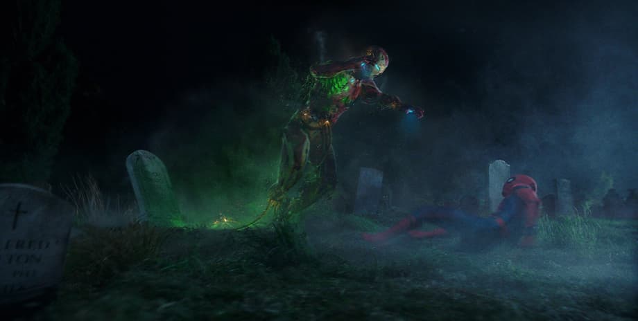 Spider-Man: Far From Home. The illusion sequence featuring Mysterio is arguably one of the best scenes we've ever seen in the Marvel Cinematic Universe, and one of its most chilling moments comes when Iron Man rises up from the grave.
