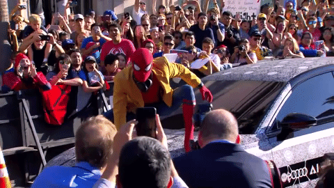 Depending on where you live, Spider-Man: Homecoming is now less than one week away. We can probably expect to see plenty of new TV spots and promo material online over the next seven days or so, but in the meantime, the reboot's world premiere took place in Hollywood last night in epic style. As you can see, that kicked off with the arrival of Spider-Man himself atop one of Iron Man's cars!