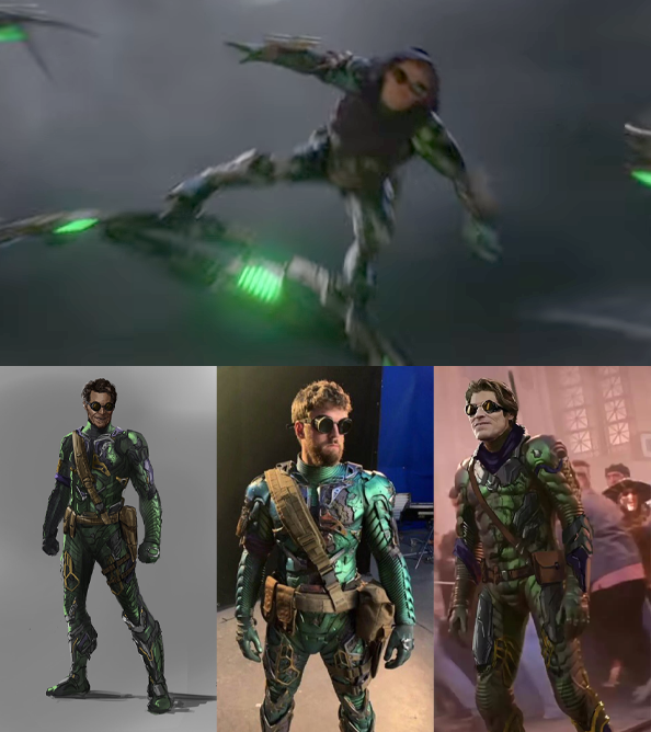 We don't know what leads to him getting a new suit (or goggles instead of his trademark mask), but this shot does match a leaked costume test photo that did the rounds not too long ago. It's an intriguing look for the Goblin, and could be the result of an earlier battle with the wall-crawler.