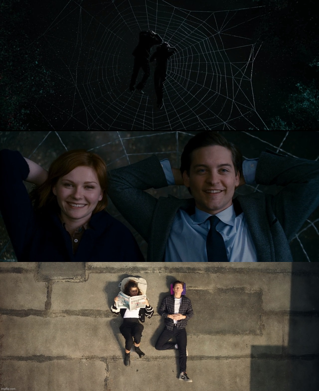 If this is an Easter Egg, it's certainly an intriguing one; the tie is noticeably different, but it's hard to ignore what appears to be a direct visual cue to the original big screen Spidey. The tie aside, these two looks are way too similar to be a coincidence, and we can't help but wonder if this has a deeper meaning.