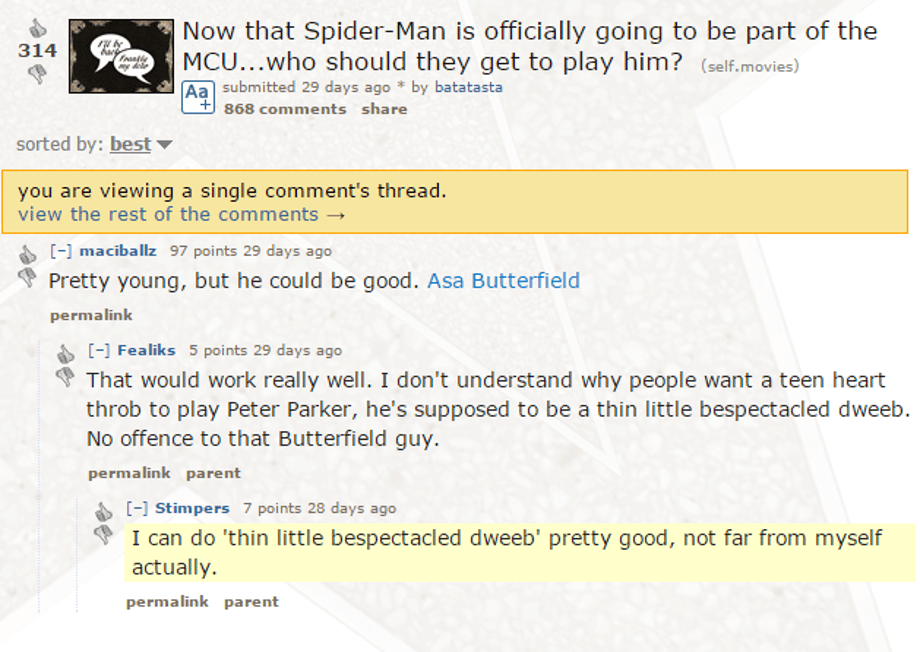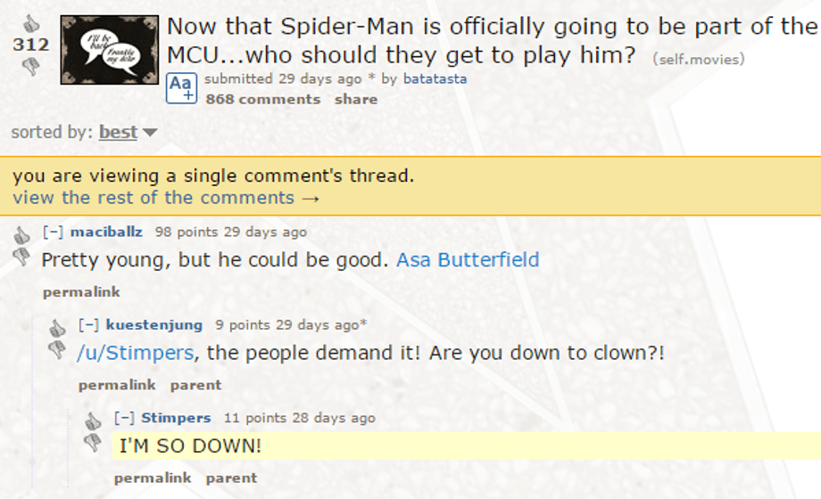 now that Spider-Man is officially going to be part of the MCU...who should they get to play him?", someone suggested his name and he actually replied, since it's known that he is a reddit user that goes by the username