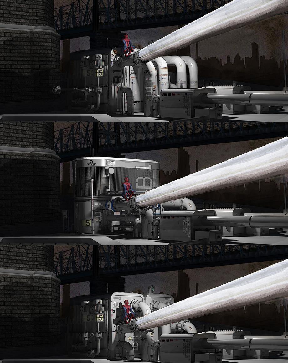 Hugh Sicotte has posted concept art that he created for Sony's The Amazing Spider-Man 2. One set features the look of the eel tanks that Oscorp employee Max Dillon (Jamie Foxx) falls into, which leads to his Electro transformation. Another set of designs is of the water chamber located at the Ravencroft Institution. Hugh even worked on the secret Roosevelt subway station where Richard Parker built a lab in a subterranean subway car.