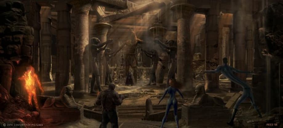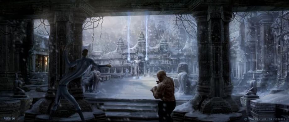 I think a lot of you will find the Fantastic Four: Rise of the Silver Surfer key frame art even more tantalizing as it features a lot of unused scenes. At some point the script had the Fantastic Four confronting Doctor Doom (Julian McMahon) in an ancient Egyptian temple. There's also artwork of an unused Silver Surfer scene that would've taken place at Cambodia's Angkor Wat temple during a snowstorm.
